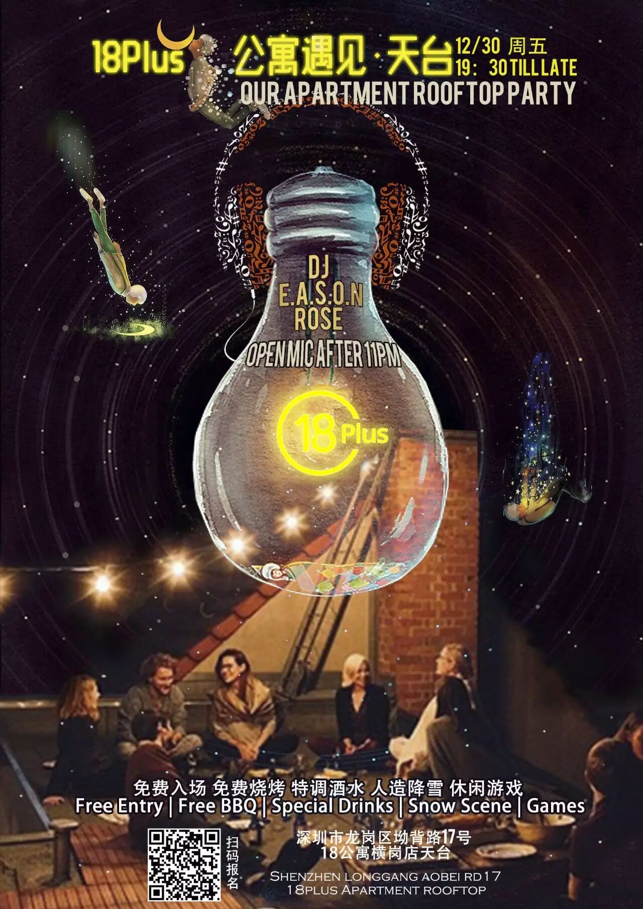 就在深圳,而且是室外,虽然不是什么大场地,算不上音乐节,但也十分有趣,别说你还没有尝试过天台派对,那样更好,这次就是不可错过的机会。烧烤等食品一律免费自助,是真的很难再找到这样的好事了。