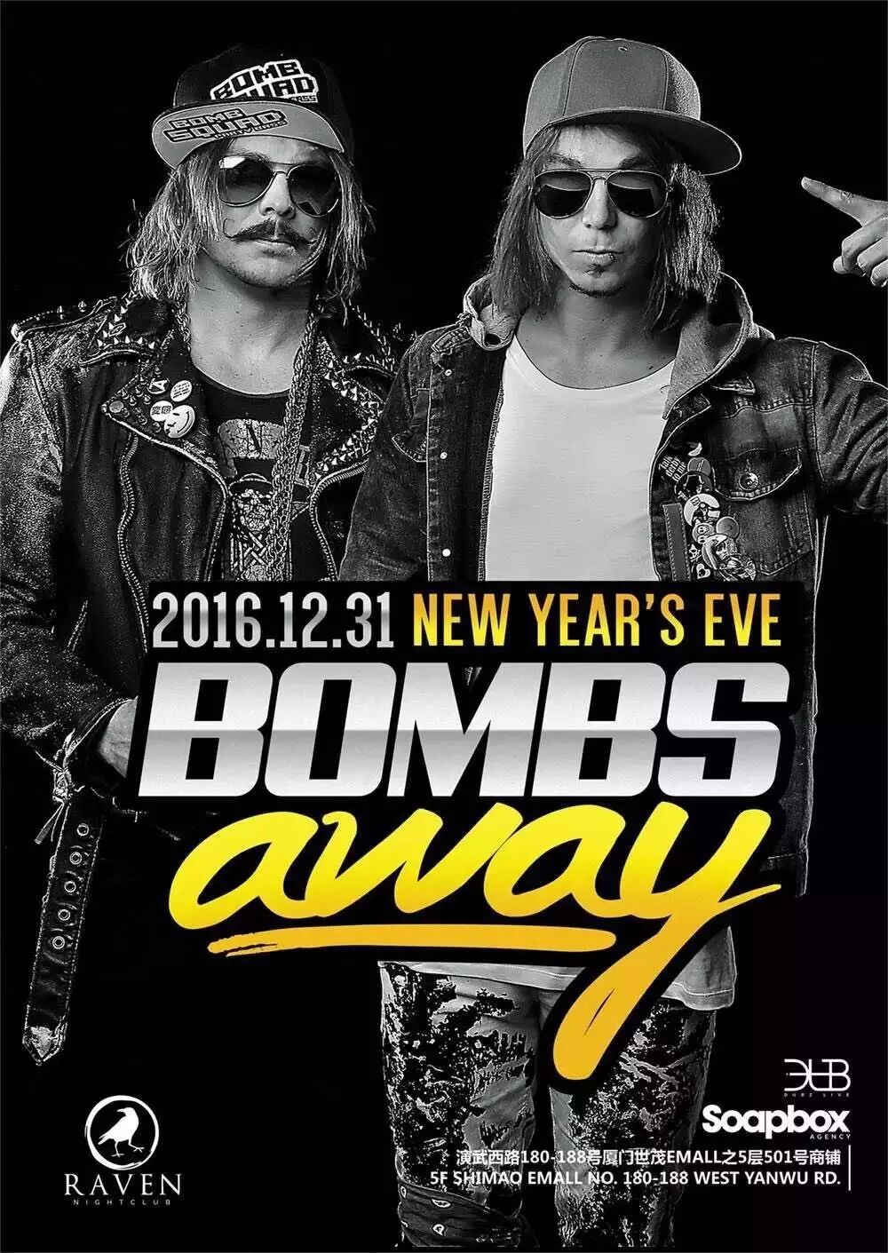 昨天晚上Bombs Away已经抵达厦门,并且跟主办方吃了晚饭。今晚不来看他们?那你还有其它更好的主意吗?不想看大明星?还是你甘愿在厦门这么美好的地方以无聊的形式玩手机?平时Raven的嘉宾演出时间都是0:30,但今天不一样,他们真的会陪你跨过2016,记得早点到舞池中央。