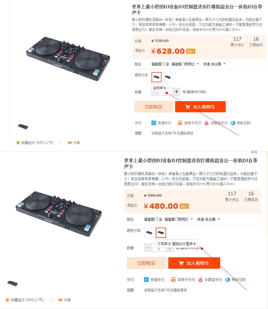 那么如果你购买480元的不带声卡版本的这款DJ控制器意味着你还需要购买一款外置声卡,这款外置声卡得是电脑的外置声卡,而且必须是带有监听功能的。解释起来很简单,既然你要打碟,肯定得既接耳机又接音响吧?没有监听功能的外置声卡将造成你无法监听。一般来说,带有监听功能的外置声卡最便宜的也要几百元,好一些的都在几千元甚至更贵,所以买不带声卡的绝对不可能比较省钱。