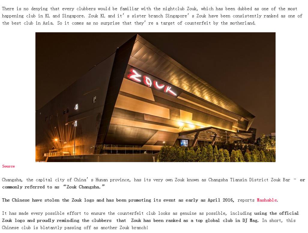 就在1月7日,马来西亚极其知名的世界资讯网站World Of Buzz刊登出一则关于“中国假Zouk”的新闻。World Of Buzz是马来西亚第一个英文新闻网站,也是最大的英文新闻网站,目的就是在马来西亚建设一个通往全球的平台。文章大致内容是指中国的假Zouk人气很高,但大家却不知道它是假的,连邀请来这里演出的知名音乐制作人&DJ也蒙在鼓里。