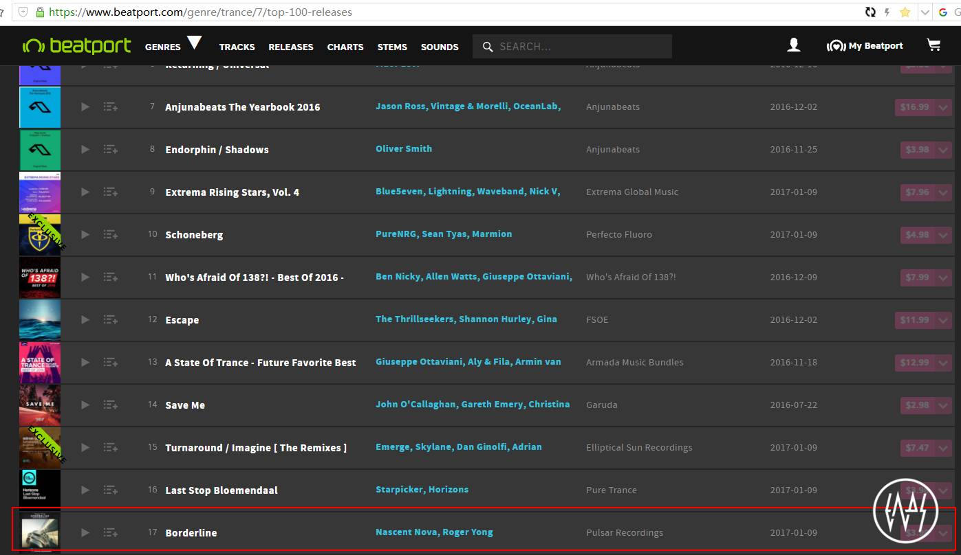 截止到今天,有一位中国电音制作人创下了目前有史以来中国最高的成绩,再次真正意义上为中国电音界争光。Nascent Nova Remix的《Borderline》在前几天发行,仅仅几天的时间就取得了百大Trance合集第十七名的优异成绩,已经有很多世界上比较知名的Trance制作人&DJ播放过这首单曲。曾经有一位非常新手的中国电音爱好者说中国人的电音从来没在世界上榜过,着实再次被打脸。