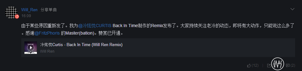 当网易云音乐的新规矩不正式公布而是让完全不知道出台新规矩的网易音乐人背锅的时候,就是网易云音乐被万众其Fuck的时候。这成了一个故事,我们不直接描述网易云出台了什么新规矩,而是把这个故事告诉你。就在昨天,中国电音制作人Will Ren为Curtis做的《Back In Time》Remix正式发行。
