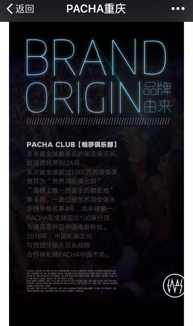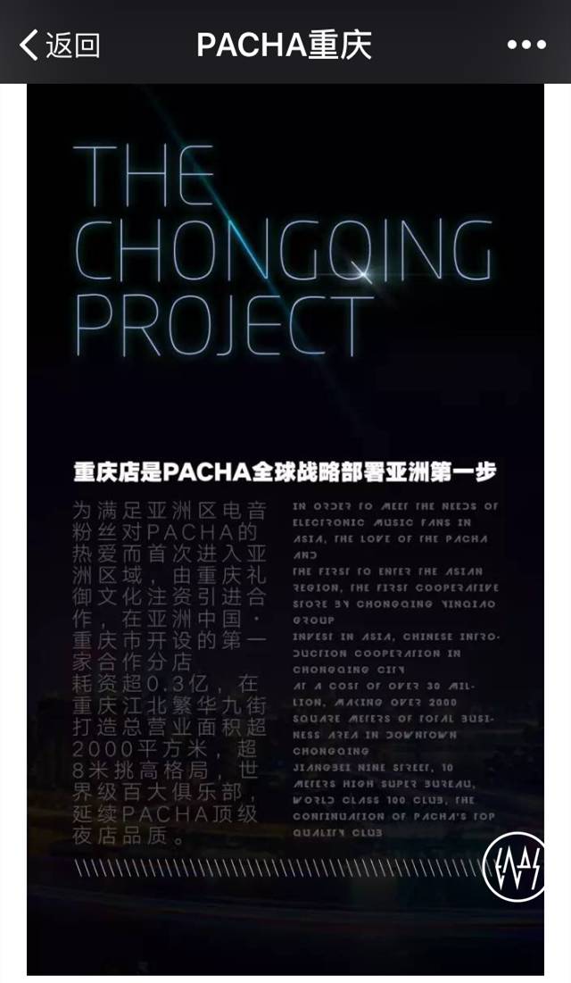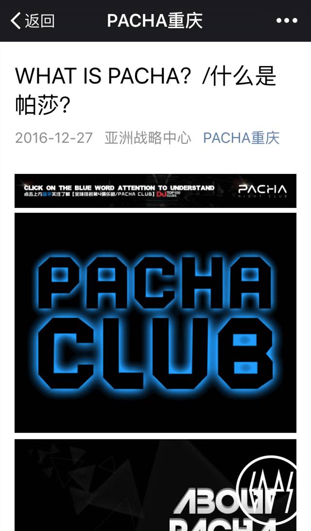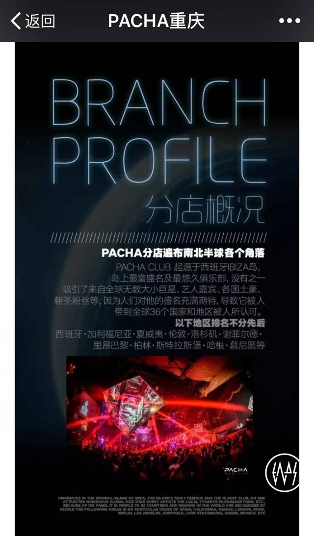 不幸的是它又出现在重庆,但重庆本来就不是电音爱好者最多的城市之一,也许是因为想掩人耳目逃离曝光,借助重庆发达的同时却没什么人懂。纸包不住火,从去年年底开始宣传自己是Pacha分店这种事必然是会被电音爱好者发现的,我们这里也已经收到很多人的投稿。看看这家假分店是如何介绍自己的。