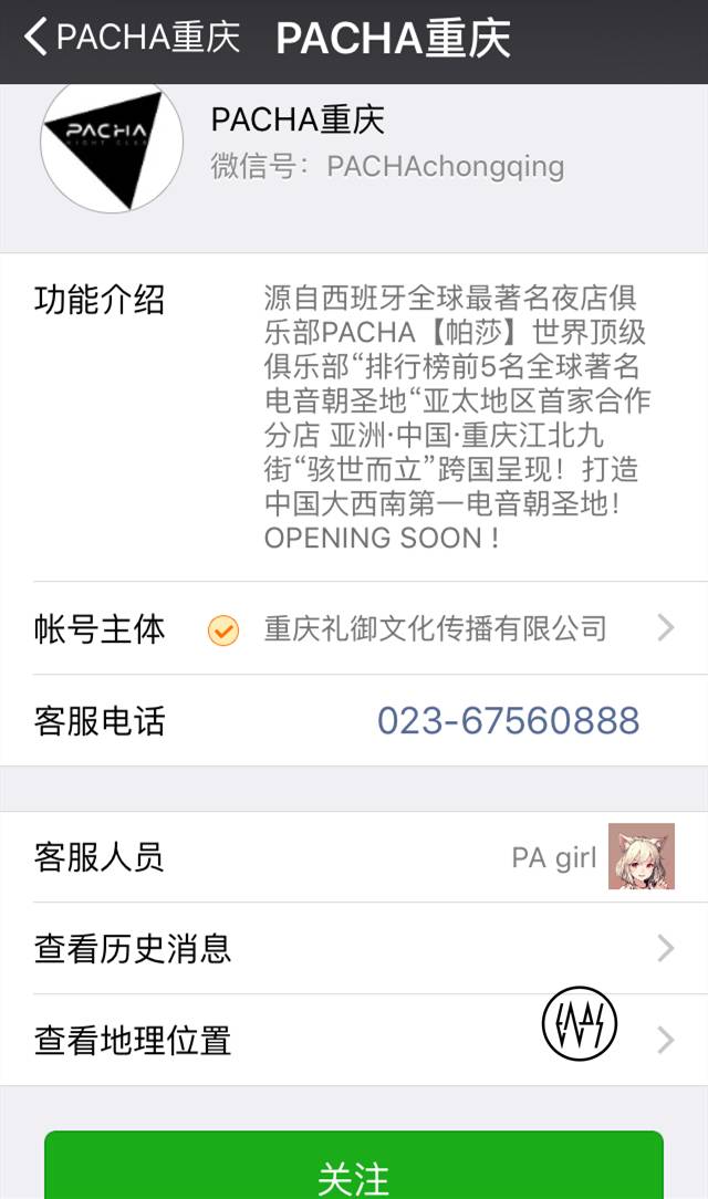 如果只是撞名字那并不等于冒充,毕竟很多英文在国外存在/在中国也存在,可能在各种不同的国家都可能存在,但这已经不仅仅是撞名字这么简单。就像我们曾经曝光过的所有假分店一样,他们是打着“分店”的名号对外宣传的,这就真的是挑战侵权品牌的极限。不仅文章如此,他们公众号的介绍同样写着是Pacha分店,这就无法以撞名字解释了。
