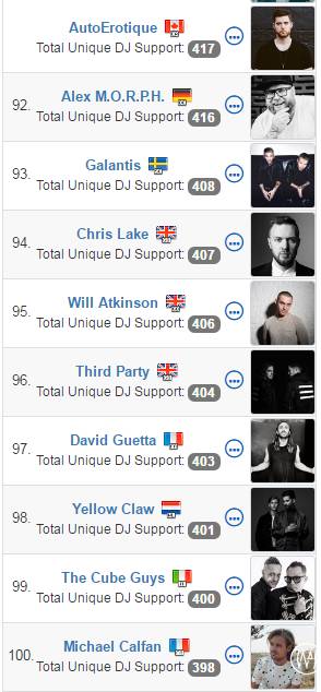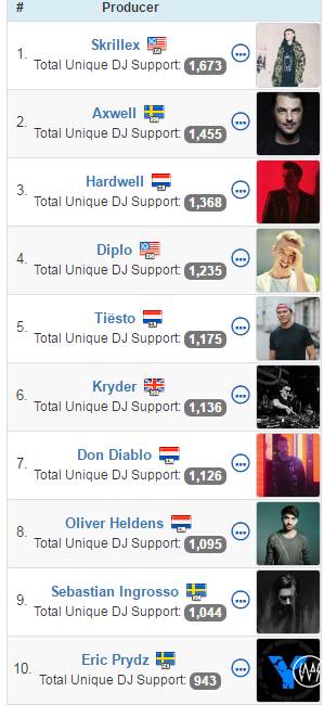 这个世界上已经出现太多百大DJ排行榜,只要你有网站并且打着自己的名义,而不是去冒充别人的榜单,那么理论上你都有资格评选,甚至连夜店也有资格,只要你真的去这么做并且把这张榜单公布于众。最大的百大DJ排行榜无疑是DJ Mag旗下的,但随后还有RA/Reddit/Bottom/DJane等数不胜数,我们写过很多。1001tracklists评选出的榜单则更有逼格,它是百大制作人而不是百大DJ。排名根据艺人2016年在该网站的人气。