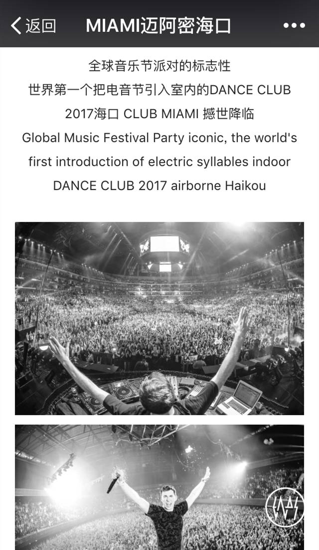 后来可能是因为有电音爱好者发现这些文章并且有非常多人指责该公众号把电音错误叫成“DJ音乐”,把舞曲错误叫成“DJ舞曲”,所以该公众号后续的文章已经改口。但这真的意味着骗局的结束?根本不可能,他们接下来的文章仍然在强调“他们把UMF引入夜店”,不断灌输“Miami夜店来海口了=UMF来海口了”这样的误导。以下是最新文章。
