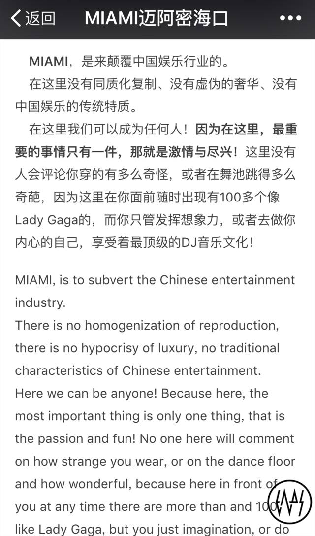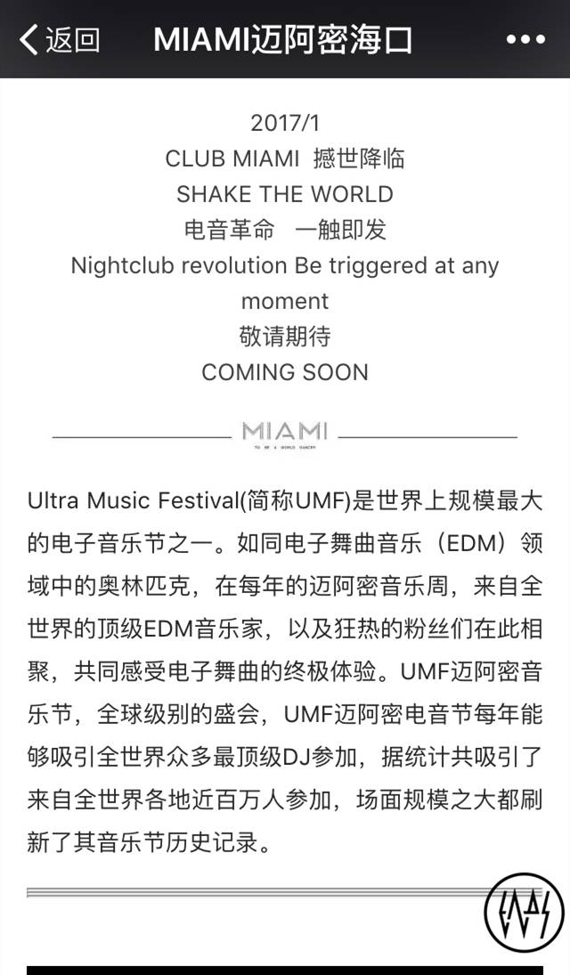 这样的把戏玩的是文字游戏,很容易就可以看出来他们能欺骗到的只会是一点也不懂电音的无辜人群,我们真的不希望他们慢慢被带偏之后成为这家夜店的粉丝,等他们误入歧途之后就真的救不回来了。该夜店的掉包计大概可以理解为“UMF是在Miami办的,而我们的夜店就叫Miami,所以UMF是在我们夜店办的”。他们只是想通过UMF这个热词和都叫Miami的通点来让自己沾边,可惜咱们并不傻。