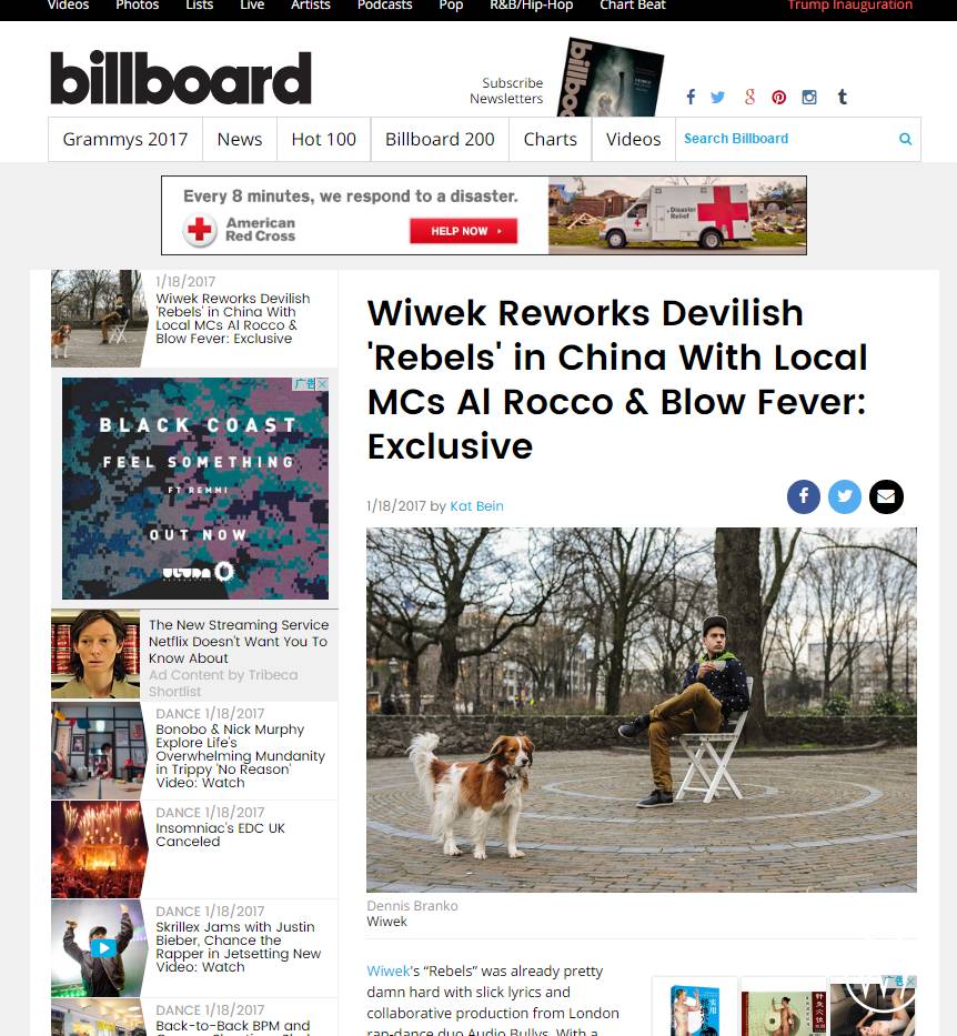 这首单曲更是在全球皆知的Billboard上被刊登,火速变成热门新闻。不过Billboard编辑在电子音乐领域还是不够专业,对于《Rebels》原版Billboard用了“Hardstyle的节奏”来形容,原版很明显用的是Electro House的鼓和节奏,并不存在Hardstyle元素。对于《Rebels》VIP,Billboard提到Trapstyle也有点模糊概念。其它“更黑暗的旋律/中西合璧/亚洲元素”等介绍是没有问题的。