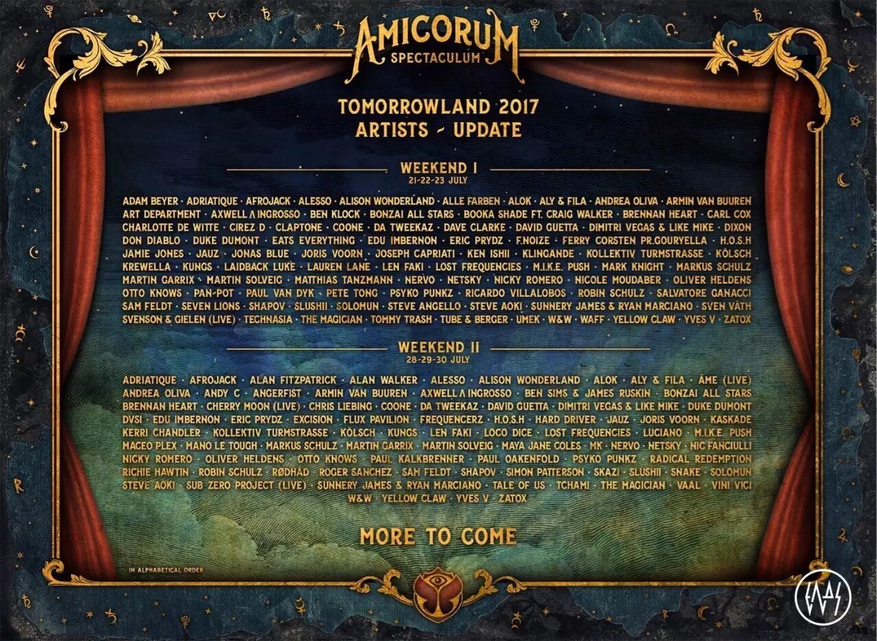 目前Tomorrowland已经公布了几波阵容,但这还不是全阵容,有些公众号竟然把现有阵容称之为“全阵容”,有严重误导之意,但我们没有抨击的意思,只是纠正而已,毕竟功课如果做得不够,有误解也不奇怪。Tomorrowland每年都有几十个舞台,许多国人到2016年仍然以为“登上Tomorrowland等于登上Tomorrowland主舞台”,3000人的小舞台都有人能吹成“吸引十几万乐迷”,这反而有点无脑捧杀。
