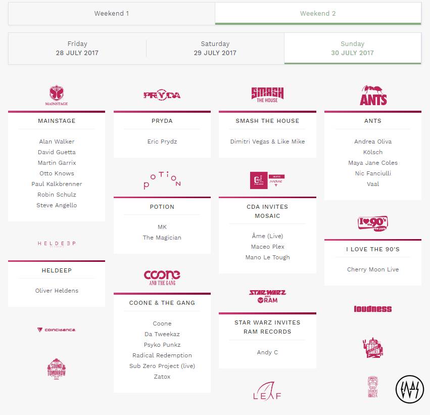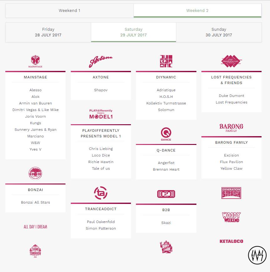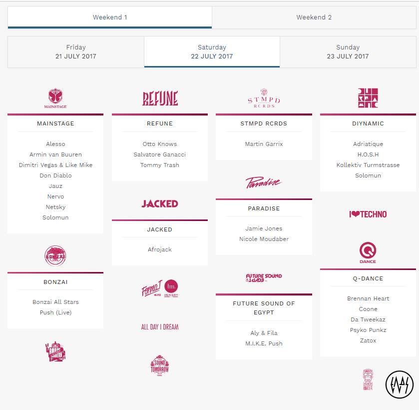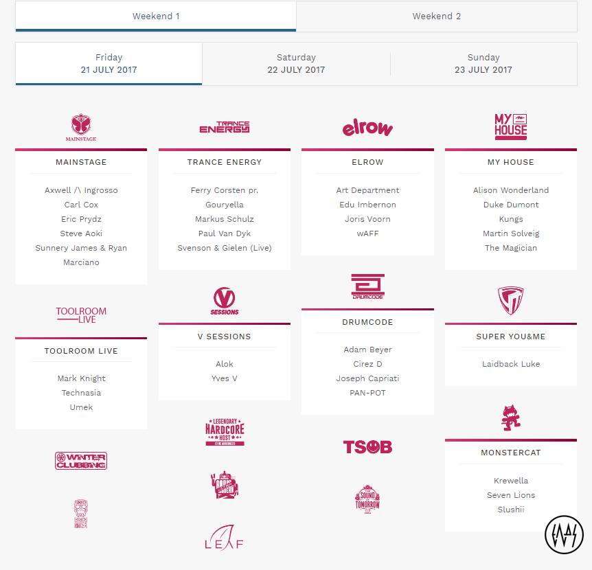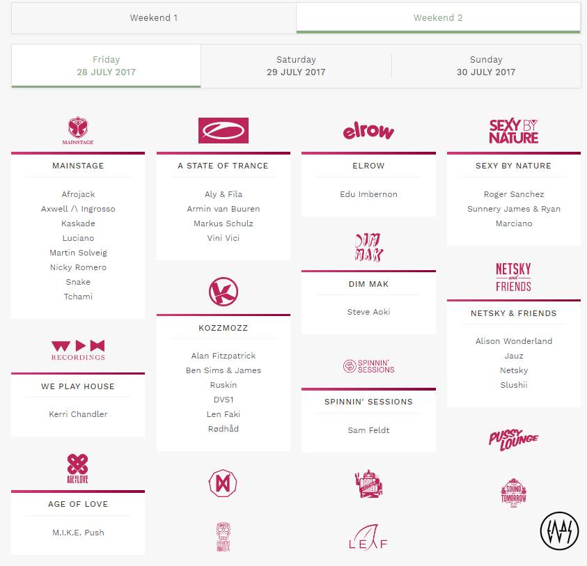 对于已经踏足过Tomorrowland/EDC/Ultra的朋友来说,绝大部分会觉得EDC>Ultra>Tomorrowland,但也有不同的看法,包括不同网站评选出来的电音节排名也有不同。之所以老司机认为Tomorrowland不如EDC/Ultra是有原因的,Tomorrowland有大量Drug Addicts,且气氛远不如EDC/Ultra,如果你正在做选择,那我算是给了你宝贵的建议。以下是目前已公布的阵容集合,期待Tomorrowland完整阵容,好戏还在后头,也许有国人。