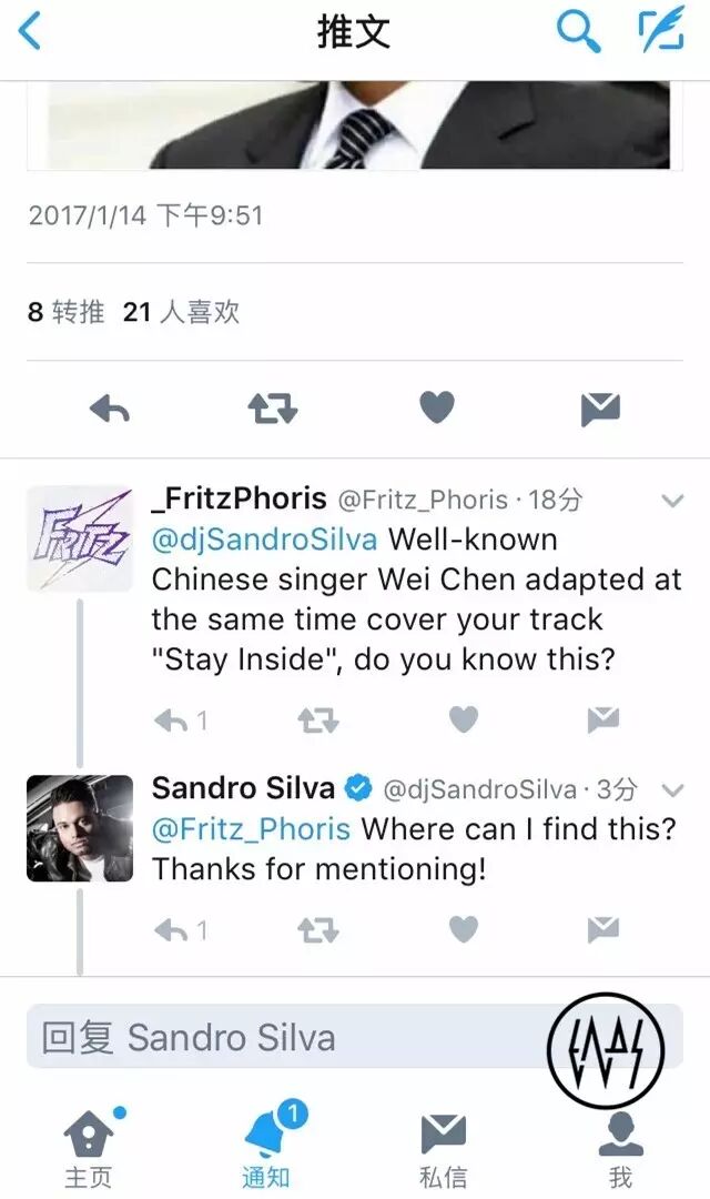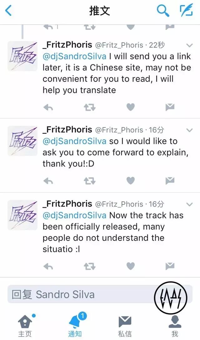 一位名为Fritz Phoris的中国音乐制作人&DJ前段时间在推特上告知Sandro Sliva情况,一开始Sandro Sliva表示毫不知情,后来可能是因为消息太多了看不到的原因,Sandro Sliva没有继续回复。不管这首翻唱/Remix是否有授权,西方艺人的大多翻唱/Remix也都有经过授权,他们也不会把基本规矩抛在脑后,名字该是什么样就是什么样,否则这跟王绎龙有什么区别?