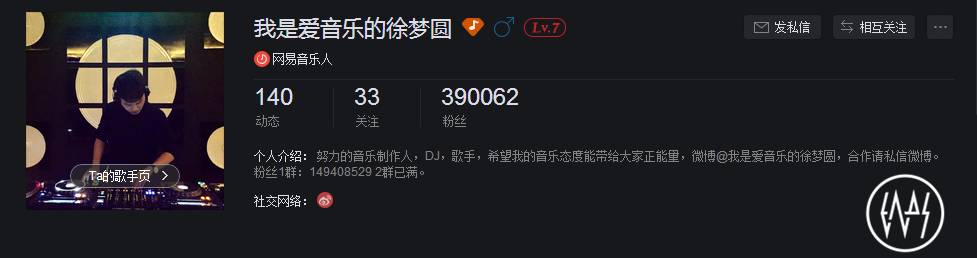 一年多的电子音乐制作经验竟然让他在网易云音乐获得39万粉丝/B站获得20万粉丝/Echo获得10万粉丝/微博获得6万粉丝,不出意外的话徐梦圆是迄今为止在中国粉丝数最多的音乐制作人&DJ,他的网易云音乐仍然在飞速涨粉当中。尽管比他制作能力强的音乐制作人肯定存在,但谁也无法否认他的人气,徐梦圆也一直在努力进步,渴望得到世界的认可,让外国人也听到更多来自中国的声音。