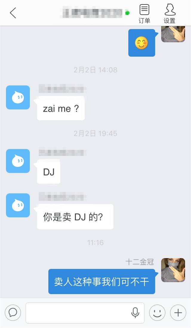 有人在淘宝店铺问客服“你是卖DJ的?”,这是很严重的犯罪行为,据说2017年开始贩卖人口会受到更加严重的法律处罚。公众号里很多粉丝都是DJ,给大家晒一晒,以免各位DJ被人卖了。近期不法分子竟然想通过淘宝店铺购买DJ?这实在令人咋舌,希望如果大家遇到这样的买家一定要大胆拒绝,再怎么爱钱也不能干出人贩子的事呀,不管是卖DJ/卖歌手/卖司机/卖厨师/卖调酒师/卖保安/卖老师/卖清洁工/卖设计师/卖收银员/卖驯兽师。