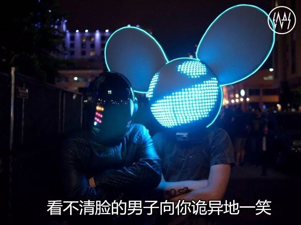 这并不是随便找的图片,他们都是音乐制作人&DJ,不管是头套/面具/眼罩,都只有他们能证明“看不清脸的男子向你诡异地一笑”到底是什么画面。这么说起来,对于电音爱好者来说这早已是养成习惯的东西,真的是一点也不恐怖,甚至还特别有趣,就算具象化地出现在你面前有什么奇怪的吗?恐怕是你不知道他们,这么多艺人你到底认识几位?再进一步理解,戴墨镜之类的情况是不是也可以理解为“看不清脸的男子”呢?