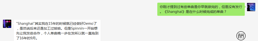 6.你刚才提到过有些单曲是你早就做完的,但是没有发行。《Shanghai》是在什么时候完成的单曲?