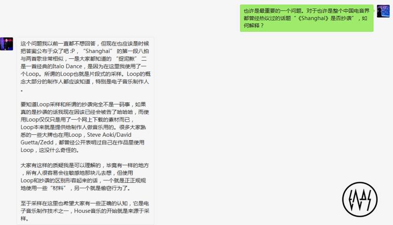 5.也许是最重要的一个问题。对于也许是整个中国电音界都曾经热议过的话题“《Shanghai》是否抄袭”,如何解释?