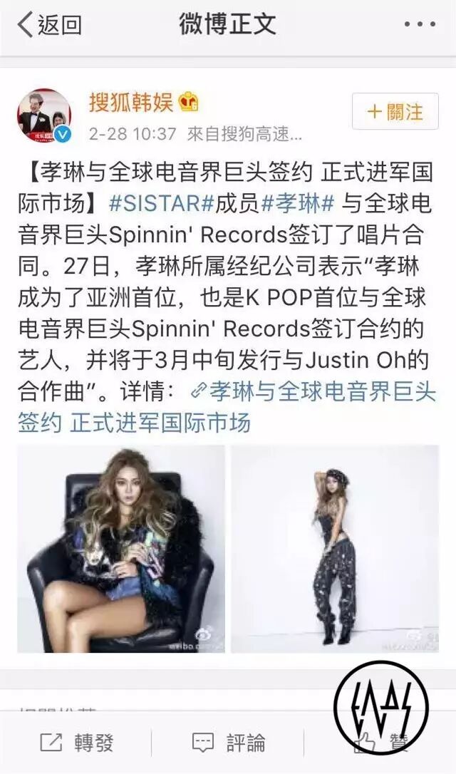 K-pop歌手孝琳的公关在今日发布了一个“重头戏”新闻,声称孝琳成为第一个签约Spinnin' Records的亚洲艺人。姑且先不说签约这件事,自称“第一个签约”,那么请问Curtis不是亚洲人吗?中国国籍加100%中国血统就这么被驱逐出亚洲了?Carta身为华裔也不是亚洲人吗?整个亚洲都被韩国收购了?怎么就能这么不要脸把没文化当人气跳板呢?况且经过内部了解,孝琳仅仅只是跟Spinnin' Records签约了这一首单曲,并没有签人。