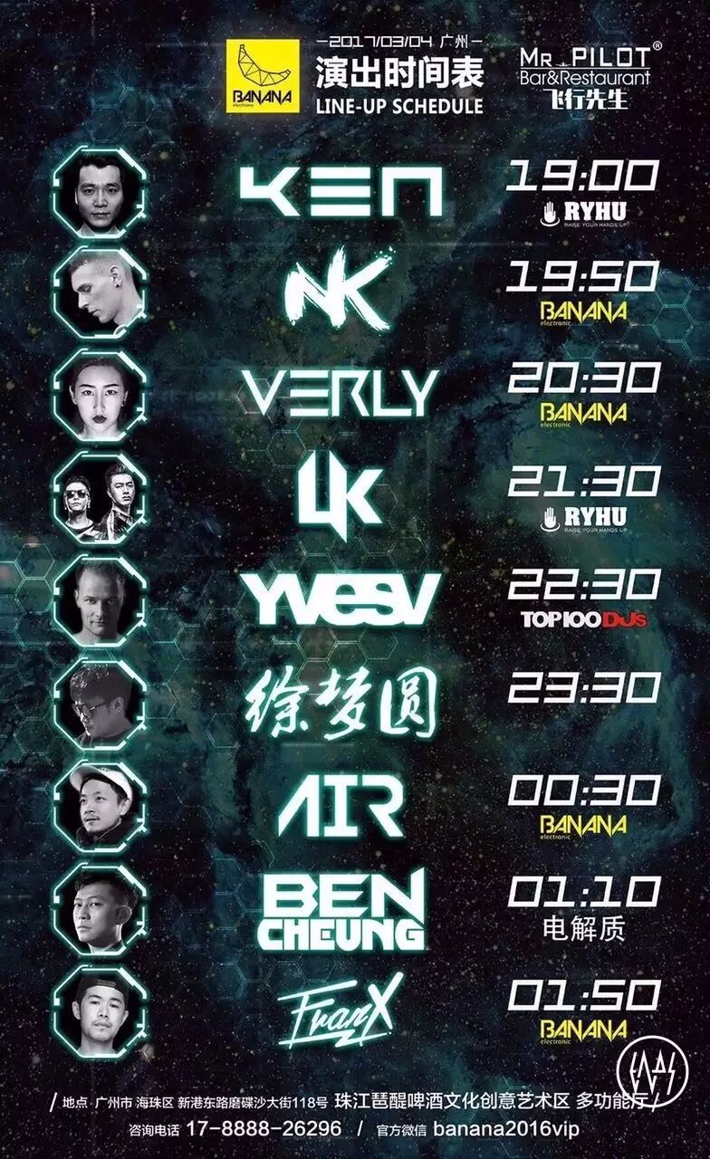 追求百大DJ的各位估计会把注意力放在Yves V上,对中国电音艺人有一定了解的则会特别在意徐梦圆首演这种开幕形式的大炸弹,他更像主角,那么除此之外还有一些音乐制作人&DJ和香蕉电音驻场DJ,你也可以根据自己喜好看看。广州2017年电音活动的启程由Moon Base带头冲锋,接下来还会是一环接一环的Rave旅程。目前时间表已经公布,你一定要集中注意力搞明白自己打算在几点看自己喜欢的艺人,别错过。