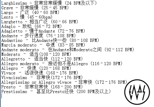 这是一套国际通用的衡量标准,并不是我们发明的,自从18世纪以来就渐渐完善,19世纪正式成型,当时在中国能接触到的音乐风格还非常少。但不管是国人还是老外,绝大部分都不太明白其实各种BPM的区间已经通用了这套定义,怎么样算快/怎么样算慢?让我来告诉你。由于翻译内容如果以文字的形式表达很有可能被微信公众平台判定为“非原创”,所以我们打算翻译后做成截图,方便大家理解BPM与速度衡量的定义,足以达成共识。