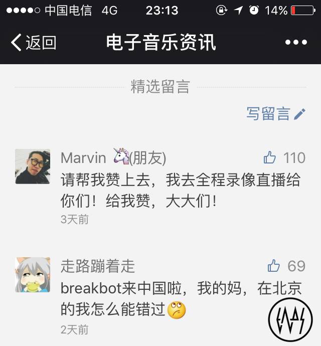 这是一场类似于私人派对,凭借邀请函入场却不对外销售门票的演出,极其昂贵。Breakbot到底有多火,你自己去听听他的歌就知道情况(福利:Nu Disco/French House法国巅峰人物Breakbot终于要来中国)。截止到昨天,3月5日23:13,定格此时获得最多赞的两位朋友,你们已经在截图里,分别获得一张邀请函。将你们的名字/电话迅速发送至我们公众号后台,最好别拖太久,到时候直接通过名字/电话入场。