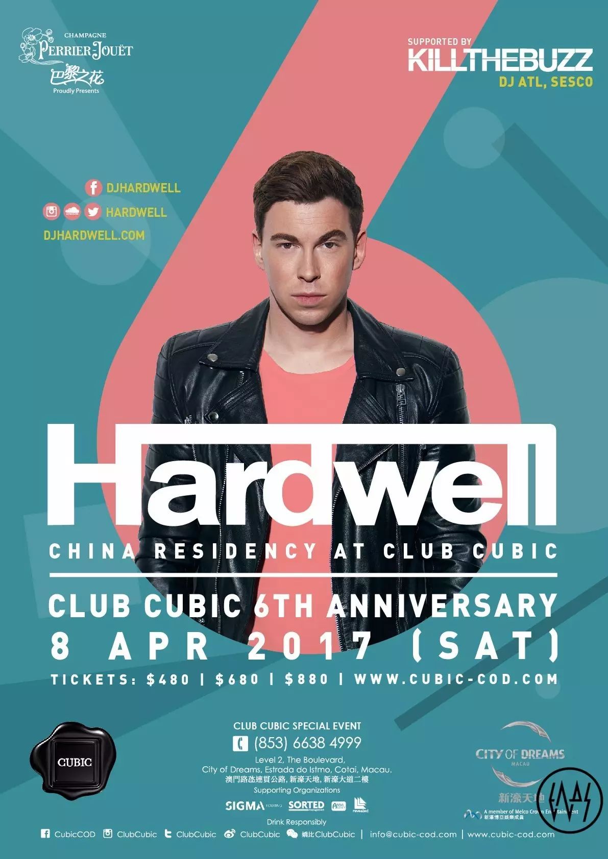Revealed厂牌老板/全球最知名的音乐制作人&DJ之一/DJ Mag百大DJ排行榜多次第一名,每个人都知道Hardwell,包含你的亲戚,除非他一个西方艺人都不认识,那么如果再用太多篇章去介绍Hardwell似乎就没意思了。最重要的是你必须知道Hardwell时隔数月之后马上又要来中国,中国澳门最知名的夜店之一,2016年DJ Mag百大夜店排名第81,过段时间就是Cubic的六周年,这次他们请来了Hardwell和他厂牌旗下名将Kill The Buzz。