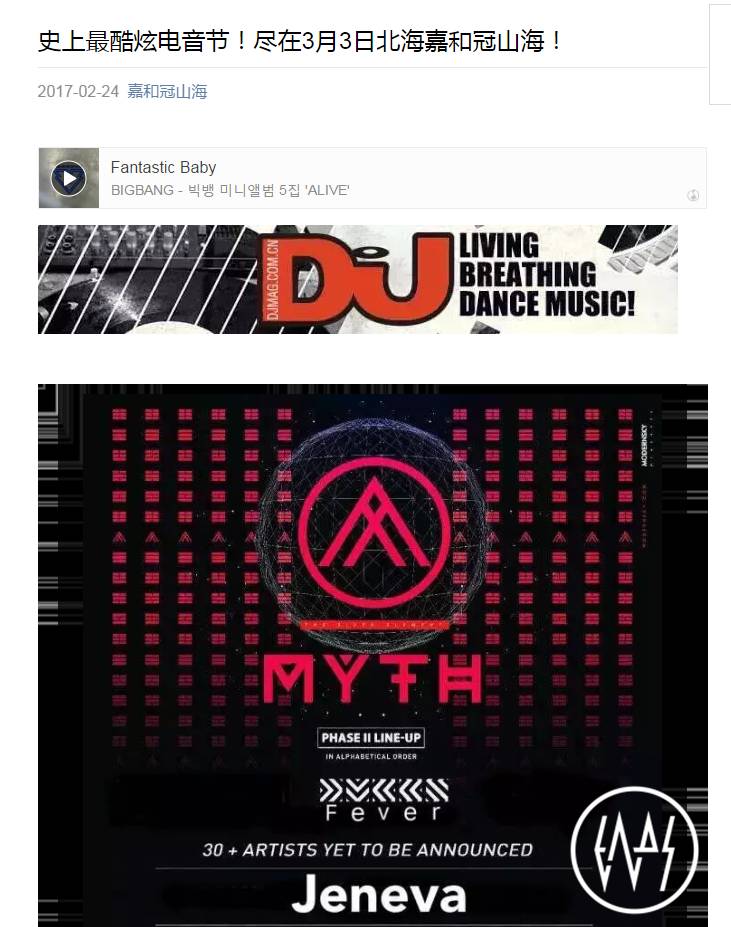 各位Raver估计多多少少听说过“妙电音节”吧?英文名为Myth的国内知名电音节,去年虽然宣传不到位但是请了Diplo/Knife Party等国际知名艺人,仍然在圈内有着巨大的反响,结束之后赢得不少话题。不料就在前几天,竟然有人光明正大地将自己办的十八流活动直接采用妙电音节的海报,连上面的Myth都不带换的。标题上的“史上最酷炫电音节”实在辣眼睛,连我自己都不知道如何判断Qlimax和EDC哪个更酷亦或是其它。