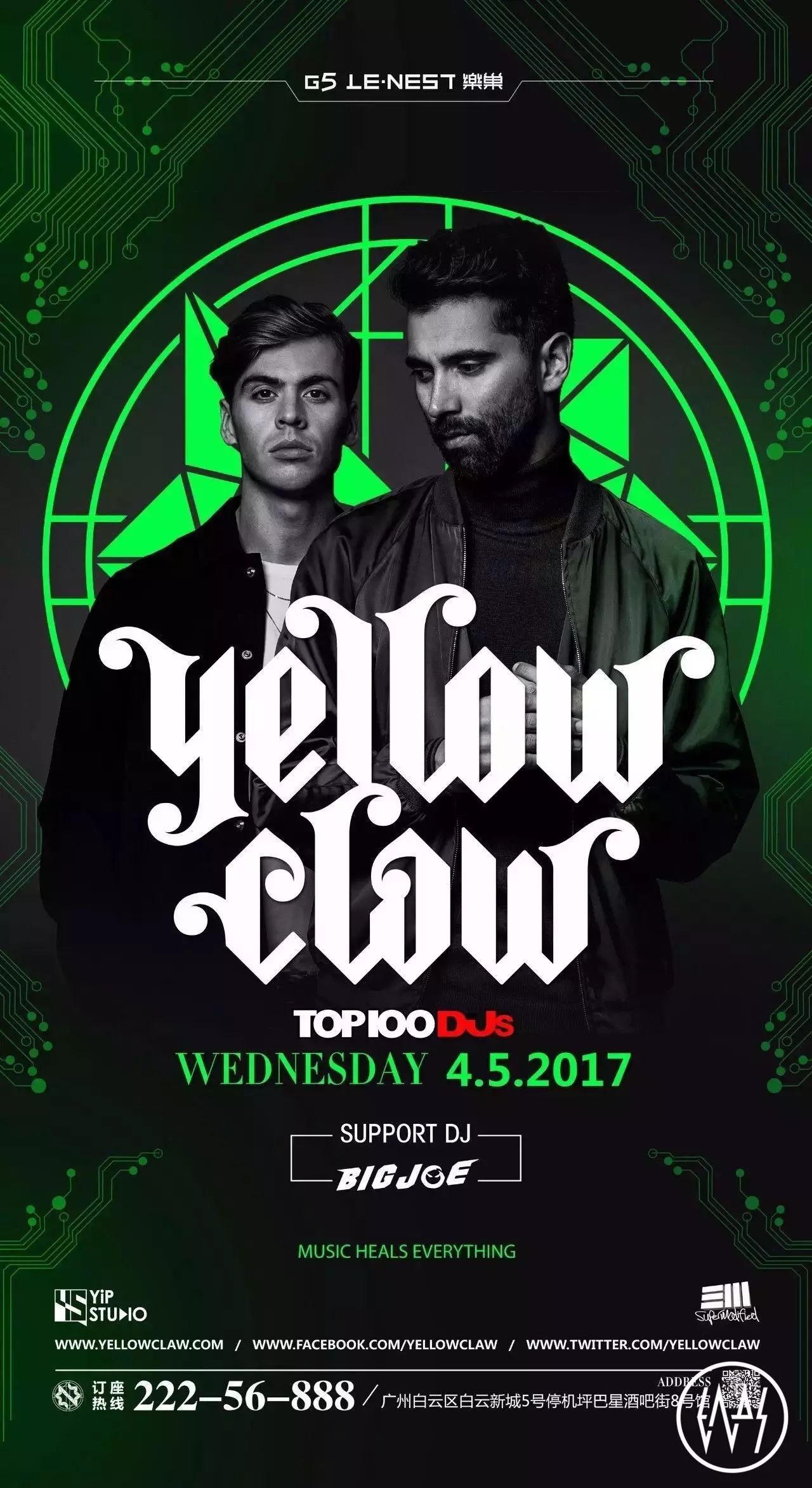 Mad House在4月7日,从外地到广州的Ravers数不胜数,而Yellow Claw全球巡演广州站刚好就在4月5日,这无疑是一个非常棒的日子。不少人刚好要去看Mad House,干脆提前过去看Yellow Claw,所以你或许可以在这次Yellow Claw演出中找到很多要去Mad House的好伙伴。再次提醒各位一点,音乐制作人和DJ毕竟是两种不同的职业,Yellow Claw也好,Mad House众多艺人也罢,他们的现场都值得你去探索。