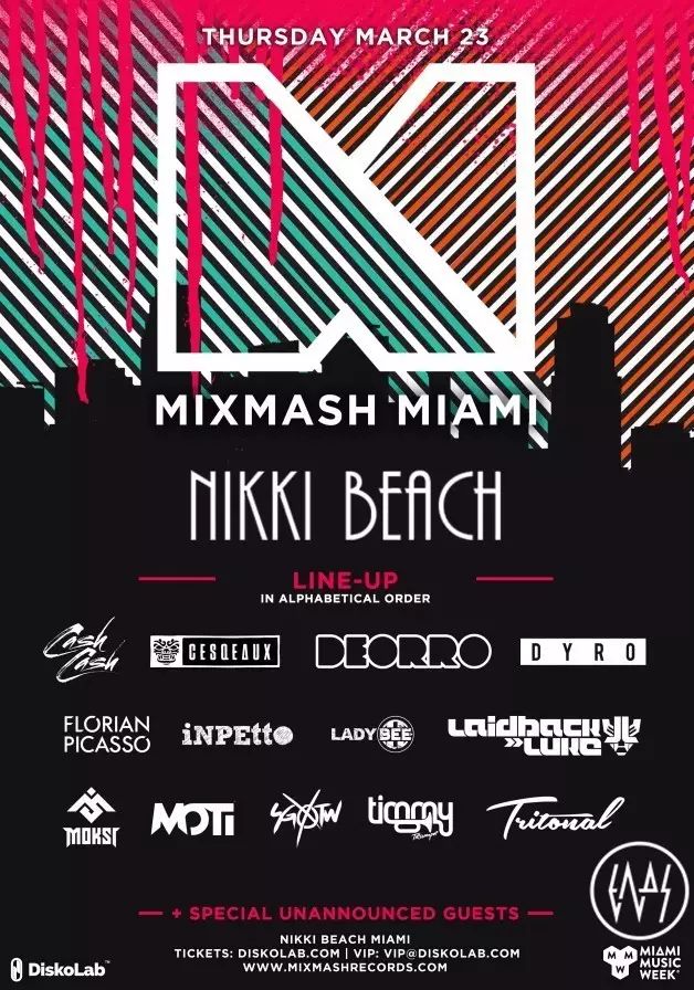 除了签约艺人和发行单曲以外,Mixmash也会在各大国家举办电音活动,而最近在咫尺的就是与Ultra Miami时间相近的Mixmash Miami了。除了众所皆知的豪华阵容以外,Laidback Luke还带上了自己的好朋友Steve Aoki和Diplo,放了一大堆ID,呈现了一场非常惊艳的三人超级B2B。中国乐迷都希望这些举止今后会在中国出现,好在他们确实也有这个打算。