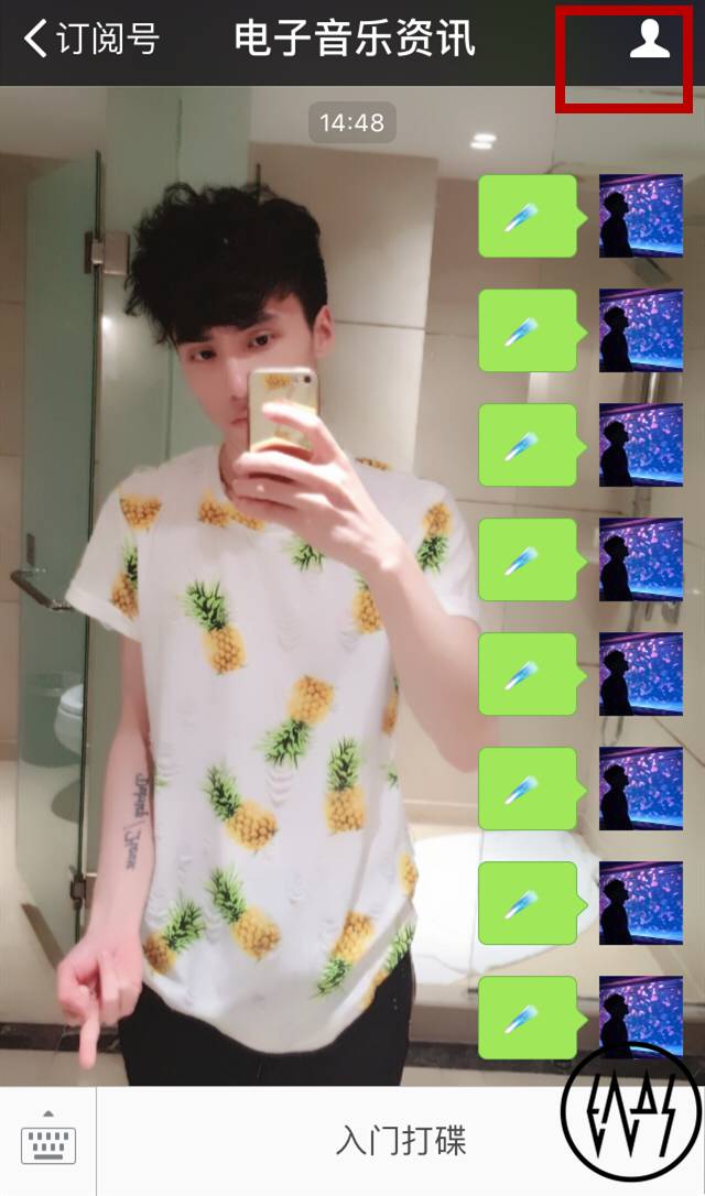 首先你需要在公众号对话页面点击右上角的人头标志。