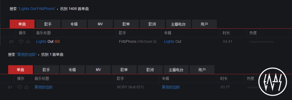 我们推荐大家在网易云音乐里搜索试听,当然你也可以点击文章左下角的阅读原文直接跳转到Fritz Phoris和Michael Qi的《Lights Out》,听说在评论区他们还为大家带来了一些额外的福利,顺便别忘了为这些好音乐助攻999+。关于《黑夜的边际》,各位可以直接搜索歌名找到它,相信也不会让你失望。最后还是那句话,如果连国人自己都不支持国人,那就别想着电子音乐真正被所有国人接受,发现并支持好的音乐,人人有责。