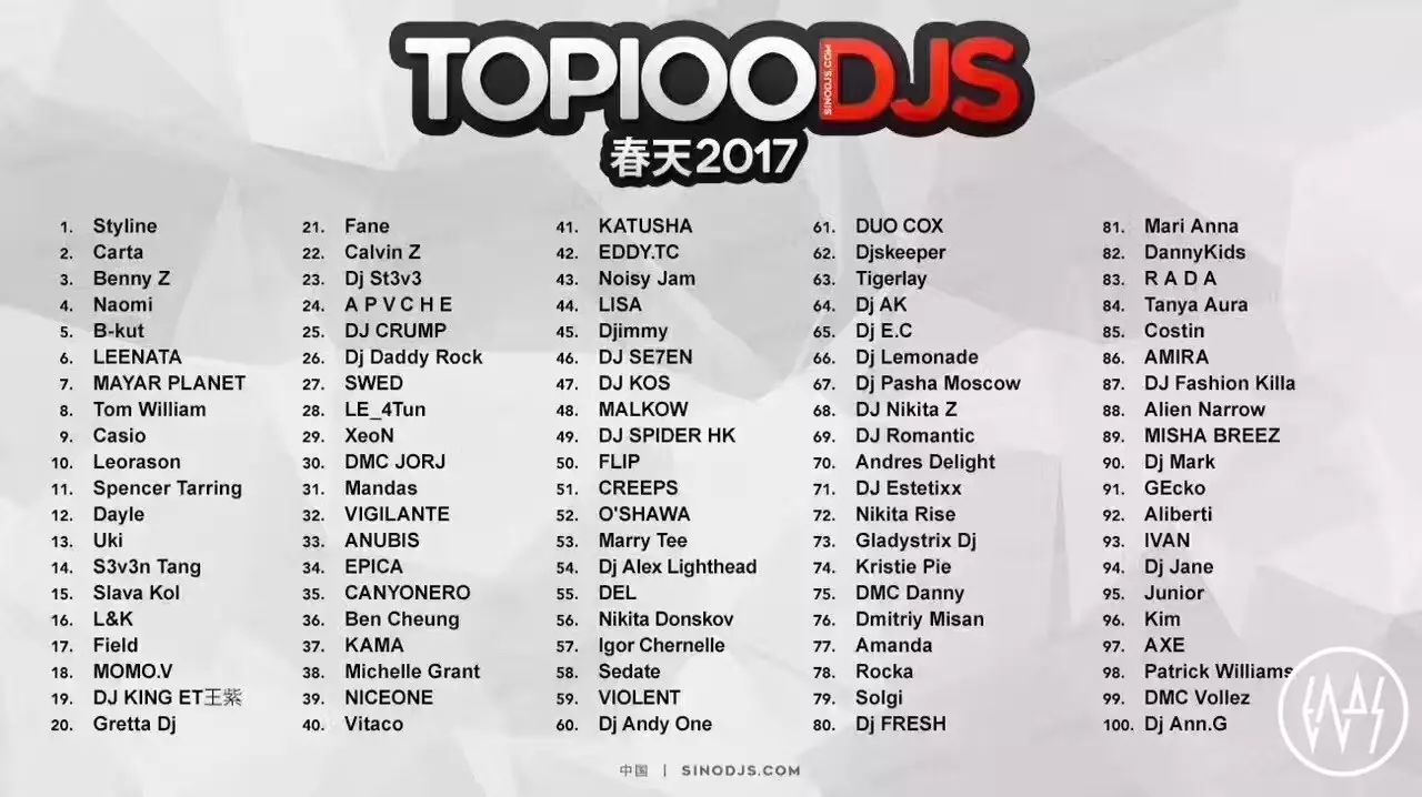 你的第一反应应该是跟我们一样的,所以我们觉得,在我们开始说发生了什么之前,得先请你看看这张2017年春天中国百大DJ排行榜,它是由Sinodjs网站评选出来的。注明,本文内容并不针对上榜的DJ。