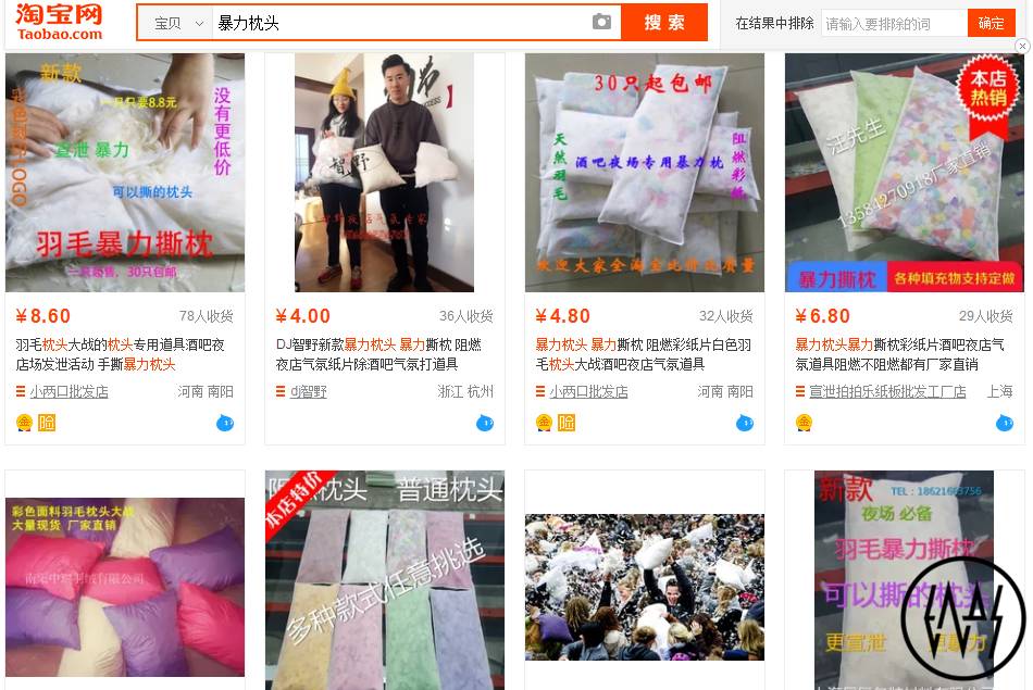 什么是暴力枕头?大部分人看到这里的时候会一脸懵逼。暴力枕头,也叫暴力撕枕,是一种所谓的夜店气氛道具。那么什么叫夜店气氛道具?就是夜店用于“搞气氛”的道具。顾名思义,暴力枕头即可以撕的枕头,而且很容易撕开,撕开之后,里面有大量的羽毛。中国夜店/酒吧大量的“枕头大战”,各种撒羽毛的“气氛环节”,用的就是暴力枕头。有非常多夜店甚至把“枕头大战”当做派对的噱头,自认为顶得上请嘉宾。