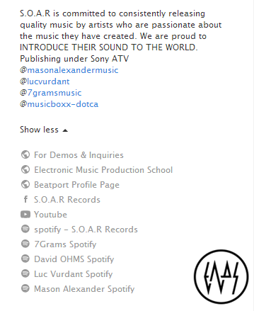 10.我们知道你现在是SOAR的联合创始人之一,这个厂牌是由索尼音乐全权负责出版的,那么你今后是否还会考虑签约主打EDM的大厂牌?