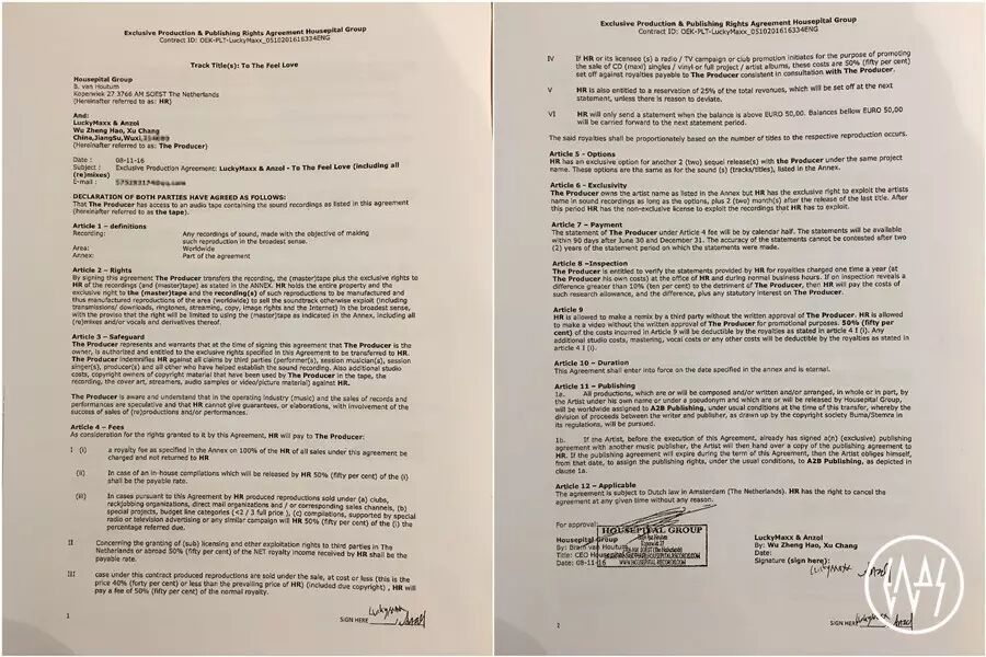 签人与签歌事实上是不相同的,艺人与厂牌之间的签约模式如果选择了签人,那么就意味着你会成为厂牌旗下的独家艺人,成为厂牌的一员,而厂牌的签约模式又分为管理和发行两大块(所有电音制作人都有义务对厂牌的签约真正了解)。虽然一直与Housepital Records有着签歌的合作,厂牌发展也算比较快,但LuckyMaxx从未迈出将自己签入荷兰厂牌的那一步,只签歌不签人,小心翼翼地走着他的职业生涯。