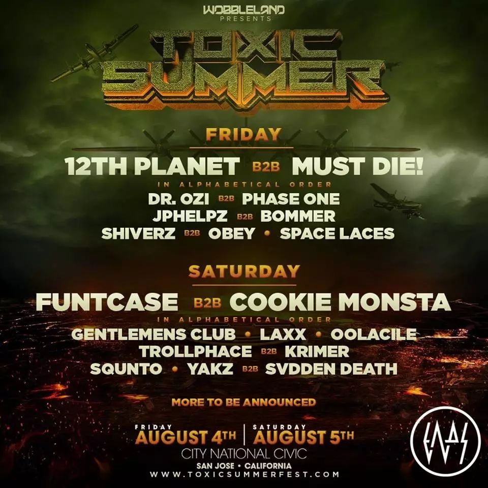 不过,这个音乐节才真的是玩最狠的!完全Bass音乐超级国际巨星一同B2B!可能是喜欢B2B的朋友梦里才会想象到的终极仙境吧,有反对意见的朋友找得出第二个这样的B2B阵势吗?确实没有。Toxic Summer音乐节,AKA 电子音乐断头台,将带来12th Planet B2B MUST DIE;DR. OZI B2B Phase One;Shiverz B2B Obey;Funtcase B2B Cookie Monsta;Trollphace B2B Krimer;Yakz B2B Svdden Seath,以及其它Bass大牌。