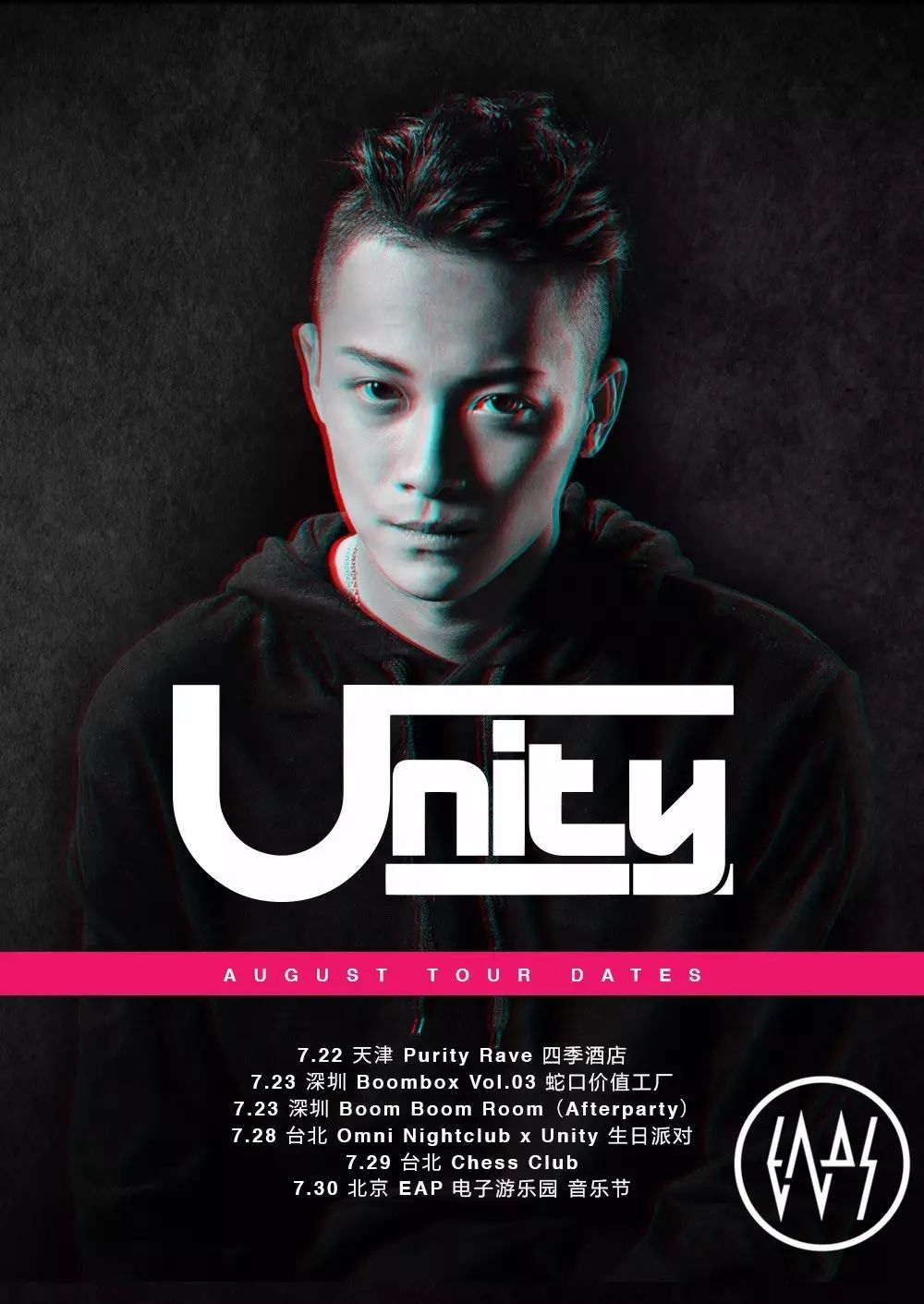 在签约Mixmash之后,Unity更大范围地感染电音爱好者,演出数量也在疯狂地增多。每个月几场乃至十几场的演出次数,让Unity的脚步渐渐迈入国内各大城市,也在中国以外的许多国家开始了演出,例如韩国等等,同样受到Bigbang韩国粉丝的热捧。在厦门,Unity已经成为本地知名度最高的音乐制作人/DJ,曾作为电子音乐资讯一周年派对嘉宾,并频繁地在Raven Nightclub演出。虽然“低产”,但Unity会获得更多国际成绩,敬请期待。