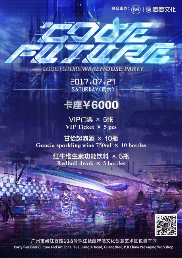 如需卡座请尽快预定,本次活动为了给舞池留足空间,所有卡座是与舞池分布开的,绝对不影响舞池的体验,而卡座本身也会有比较好的舞台视角。考虑到很多夜店都在压榨舞池,甚至根本没有舞池,Code Future不愿意这么做,毕竟这是一场仓库派对,主办方和Ravers都不想看到这样的场景,所以当天的卡座也十分有限。有卡座需求的话,预定微信emocar0lic,请必须注明来意。