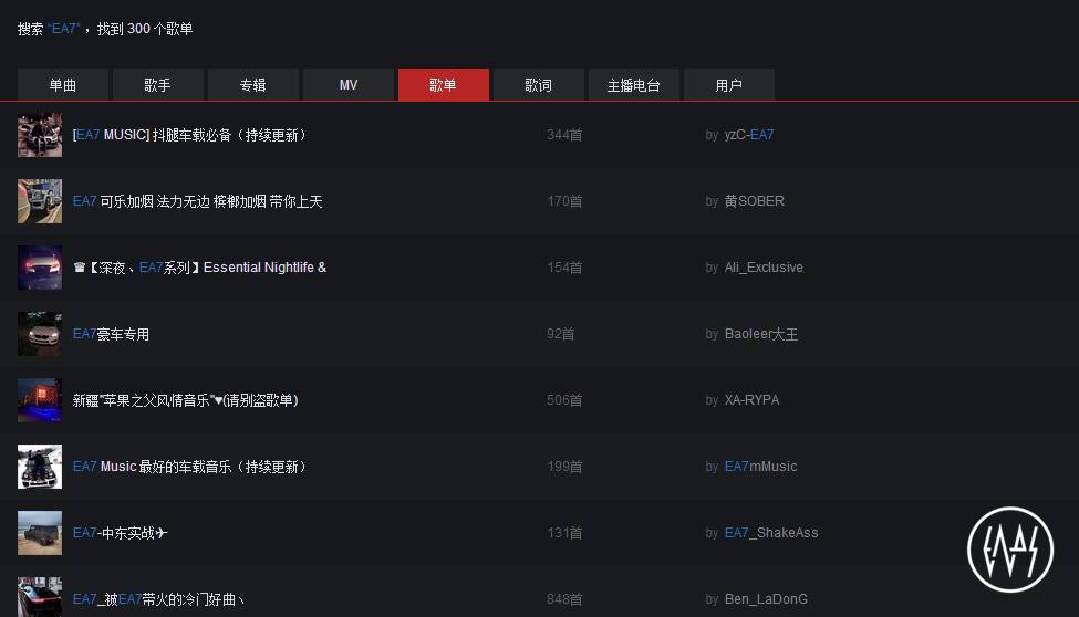 找到网易云音乐上的“EA7”歌单看看吧。电子音乐资讯团队统计了100首被称之为“EA7音乐”的单曲,发现这些单曲的音乐风格围绕着以下几种:Bass House/G-house/Deep House/Future House/Vocal Deep House/Funky House/Sax House等等。大体上发现了一个特征,只要是Deep House的分支,或者听起来稍微有点像Deep House,拥有Deep House元素的House音乐子风格,都很容易被土嗨称之为“EA7音乐”。