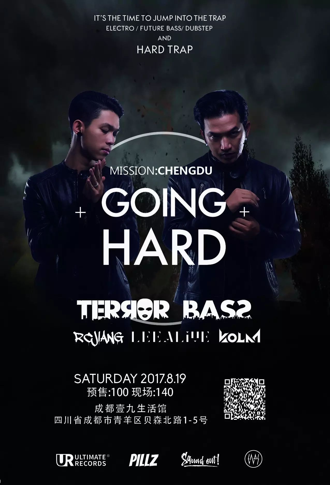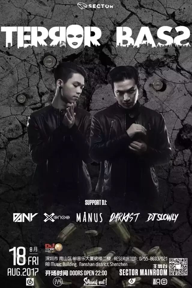 硬邦邦的八月份,电子音乐资讯和Squad Out!把Terror Bass带到中国,并交给了三个城市的主办方。准备享受亚洲至上的电子音乐组合带来的洗礼。目前,Terror Bass在Facebook上的粉丝甚至比Saymyname还多。这幅黄种人的面孔正在告诉西方国家,电子音乐并不是只属于白人,即便是现在最火的The Chainsmokers和Marshmello也十分认可Terror Bass。有机会记得去Terror Bass的现场看看,任自己陷入无法自拔的深渊。