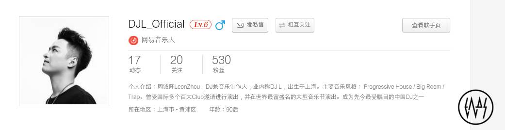 线上知名度与线下知名度的概念并不全然相等,例如DJL正是一位在线下知名度很高的音乐制作人/DJ,特别是上海的电音爱好者圈子中。DJL在上海多家家喻户晓的夜店从事过音乐总监的工作,至今仍然是上海Myst和Fusion的音乐总监。从最早的Techno/Trance到如今的各种EDM,DJL经历过很多年的成长与变化,而显然一直在前进。