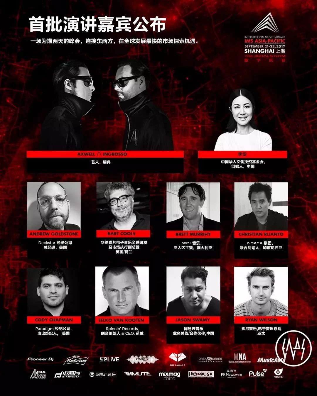 除去大量艺人以及电音圈专业人士将在这里畅聊电子音乐行业以外,Pyro中国百大DJ排行榜也将在IMS亚太峰会上宣布结果。从EDM/商业舞曲到地下音乐,IMS亚太峰会一一收录,厂牌工作者可以从厂牌巨头了解厂牌模式;主办方可以直接从全球顶级主办方身上汲取经验;国内艺人们及音乐爱好者们也可以听听国际顶尖艺人们对电子音乐的说法。