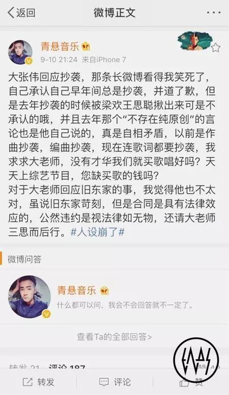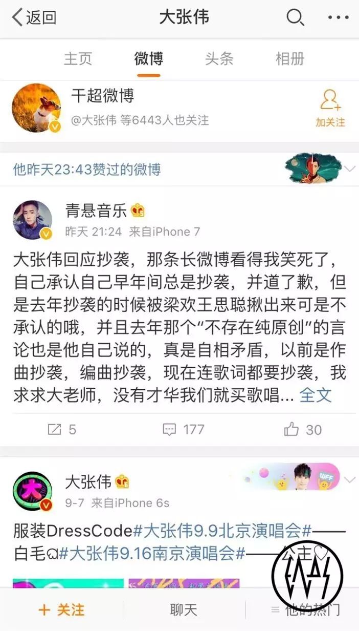 建议大张伟也别叫自己音乐裁缝了,精分不精分?一下子承认抄袭,一下子不承认抄袭,每天花那么多钱做公关,公关跑不动了就打感情牌有意思吗?还有,能不能平时多听歌?每首歌抄来抄去,抄的全是热单,生怕大家发现不了这是抄袭吗?可悲。