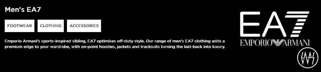 实际上,EA7本身是一个服装品牌,严格来说是阿玛尼的子品牌,Emporio Armani旗下的运动系列。EA7主要生产运动服/卫衣/夹克,在西方和中国都算得上是一个名牌。对于了解Emporio Armani的朋友来说就更加谈不上陌生。