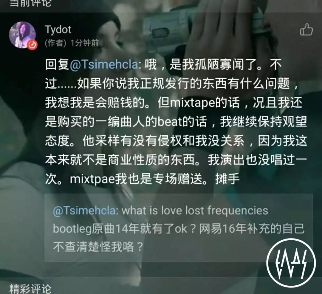 Lost Frequencies是电音领域非常出众也确实有实力而且不爱计较的制作人/DJ,盗人单曲当Beat承认的话,Lost Frequencies其实也不会追究。而现在Ty.得知了《What Is Love (Lost Frequencies Bootleg)》是2014年的单曲后,已经把锅甩给编曲人了。