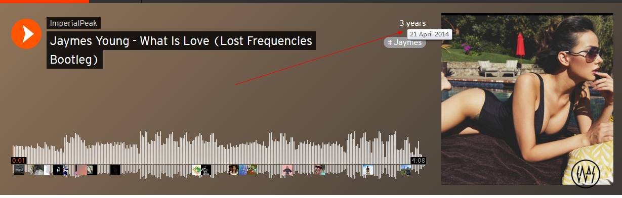 《What Is Love (Lost Frequencies Bootleg)》,Soundcloud链接为“https://soundcloud.com/imperialpeak/jaymes-young-what-is-love-lost-frequencies-bootleg”。需要自行准备上网工具。2014年发的歌,2016年偷完了装无辜有意思吗?