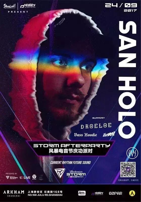 2017年9月24日,风暴电音节上海站,22点结束之后并不意味着Party is Over。别再抱怨Rave后带来的Depressed,这只是意味着另外一场派对的开始。风暴电音节官方Afterparty,跟着San Holo去寻找光,品味Future Bass背后的有趣灵魂吧。