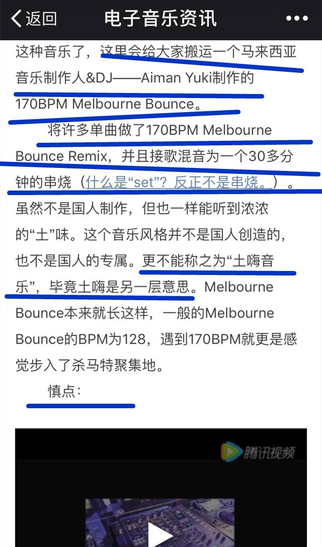 快手第一土嗨还提到“你的Mixtape也是土嗨”,下面一群夜店驻场DJ跟风喷“混音技术真烂,放的歌真土”。哈哈,然而那个视频是2016年7月15日,科普170 BPM Melbourne Bounce的文章里面的(土嗨所谓的“快摇”是什么音乐风格?)。