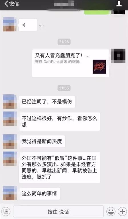 Daft Punk与我们如今可以接触到的任何音乐制作人/DJ都不同。如果Daft Punk不想做音乐,他们就会有几年的时间不做音乐。如果Daft Punk不想演出,天王老子亲自上也请不动。夜店举办活动固然是好事,但冒充Daft Punk,实际比大张伟/王绎龙抄袭更加过分。