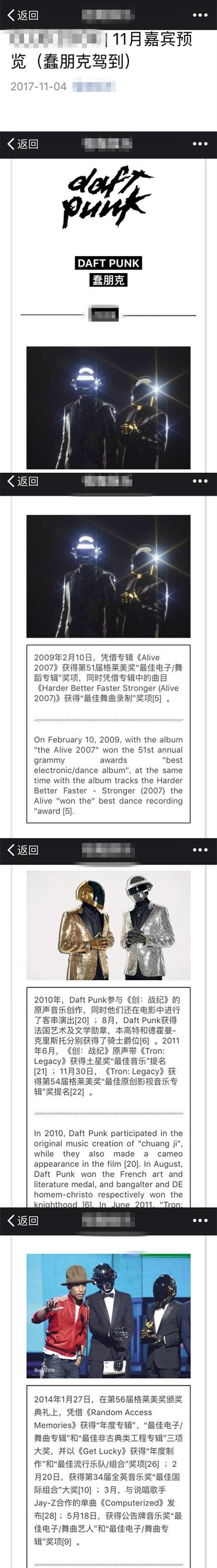 虽说在海报上心虚打上了“致敬”的迷你字迹,但在夜店的宣传推文上,只字未提这是一场模仿秀。从文章的标题到文章的内容,全部都在介绍Daft Punk,也直言“Daft Punk驾到”。可见该夜店的居心叵测和图谋不轨。
