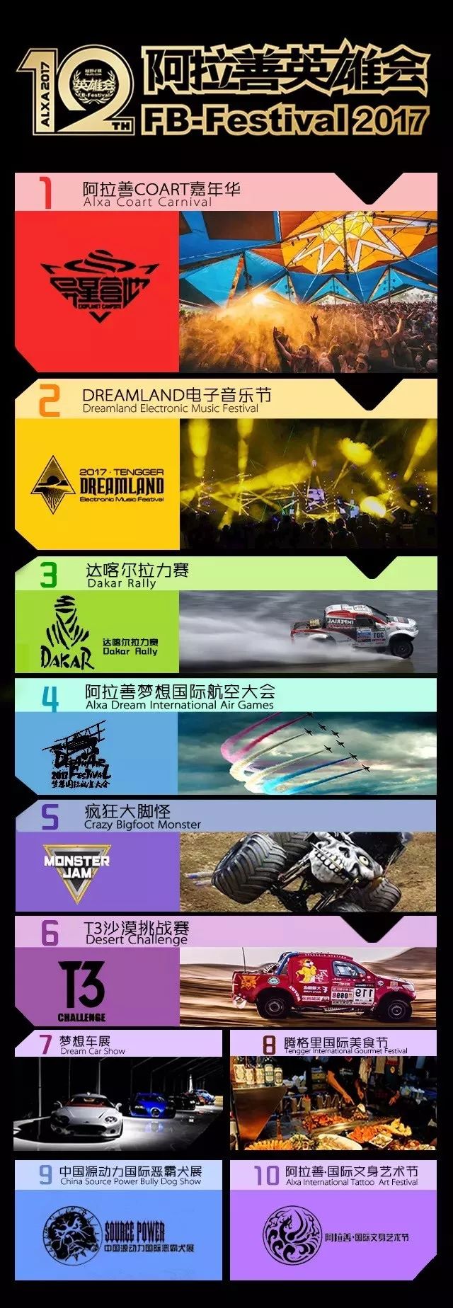 千万注意。梦想之城今年的200万人,不光指参与音乐节的人数。虽说Dreamland是电音节,但Dreamland已经打破了电音节的传统模式。它结合了其它多种活动形式,如下图,一起在巨大的沙漠展开。正是因为如此,而创造了截止到目前的新纪录。